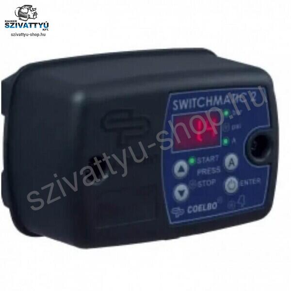 A Coelbo Switchmatic 2 digitális nyomáskapcsoló egy kiváló minőségű elektronikus nyomáskapcsoló, egyfázisú elektromos szivattyúk indításához és leállításához, azaz vezérléséhez max 3HP (2,2KW-os) motor teljesítményig (16A). A készüléket tágulási tartállyal, azaz hidrofor tartállyal együtt kell használni! A Switchmatic 2 nyomáskapcsoló digitális nyomásmérővel rendelkezik. A bekapcsolási és kikakpcsolási érték is külön állítható 0,1 bar lépésekkel. Elektromos bekötése a hagyományos mechanikus nyomáskapcsolókkal megegyezik. A Switchmatic 2 digitális nyomáskapcsoló 1-8 bar nyomás között használható. A differenciál , tehát a ki és bekapcsolási nyomás érték közötti különbség maximum értéke 7,0 bar lehet. Ez a digitális nyomáskapcsoló számos védelmi funkciókkal is rendelkezik. Például szárazon futás elleni védelem, automatikus újraindítási funkcióval ellátva. Gyakori ki és bekapcsolás elleni védelem. Ez akkor jelent kifejezetten jelentős védelmet, ha a hidrofor tartályban kevés a levegőnyomás.