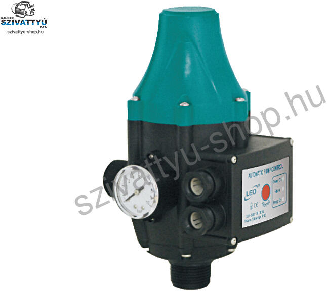 A Leo PS-04B egység, NEM szivattyú, hanem egy szivattyú vezérlés, áramláskapcsoló. A szivattyú vezérlésére szolgál, mellyel automatizálható a szivattyú üzemeltetés. A Leo áramláskapcsoló a szivattyú nyomóágába építve ( csak függőlegesen) automatikusan indítja csapnyitásra a szivattyút, csap zárásra 10-15 mp –es késleltetéssel leállítja a szivattyút, ezen felül szárazonfutás ellen is megvédi szivattyúját. Ezen tulajdonságának köszönhetően kiváltja a hidrofortartályos, nyomáskapcsolós megoldást öntözéshez. A Leo PS-04B áramláskapcsoló könnyű , kis helyszükségletet igényel, külön beállítást nem igényel. Az áramláskapcsoló indítási nyomása 1,5 bar, ezért a függölegesben beépített vízvételezési pont (csap) nem építhető be 15 méternél magasabban, mert ez esetben a visszaható vízoszlop magasság miatt nem tudná a szivattyút elindítani. A Leo PS-04B áramláskapcsoló szárazonfutás esetén leállítja a szivattyút, de újra indításra nem képes! Csak manuális kézi indításra indul újra a RESET gomb megnyomásával. Az áramláskapcsoló elektronikus panelja cserélhető, igény esetén rendelhető. Elektromos bekötőkábellel rendelkezik. A 90 fokos bekötésnek köszönhetően egyszerű telepíthetőséget biztosít.